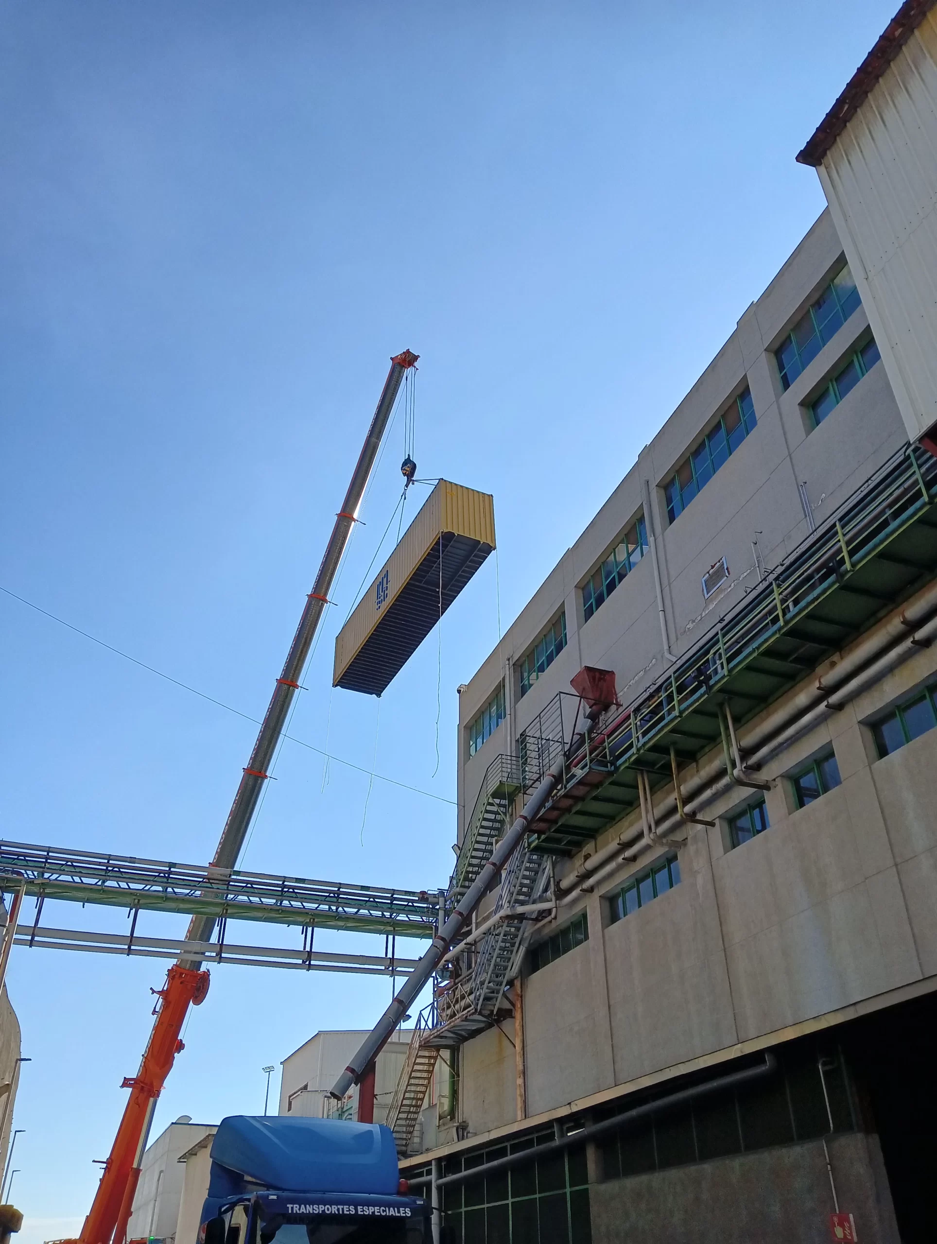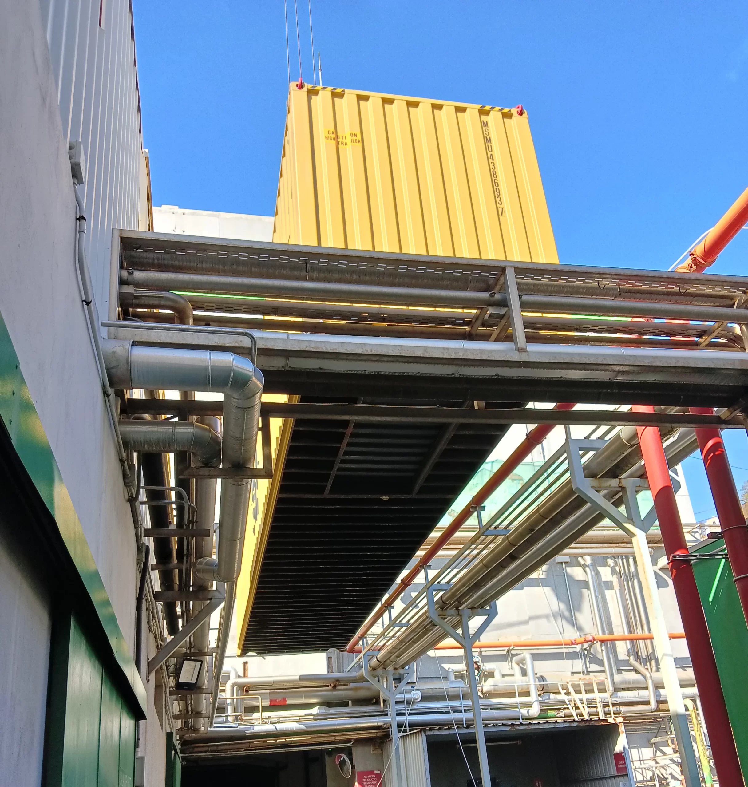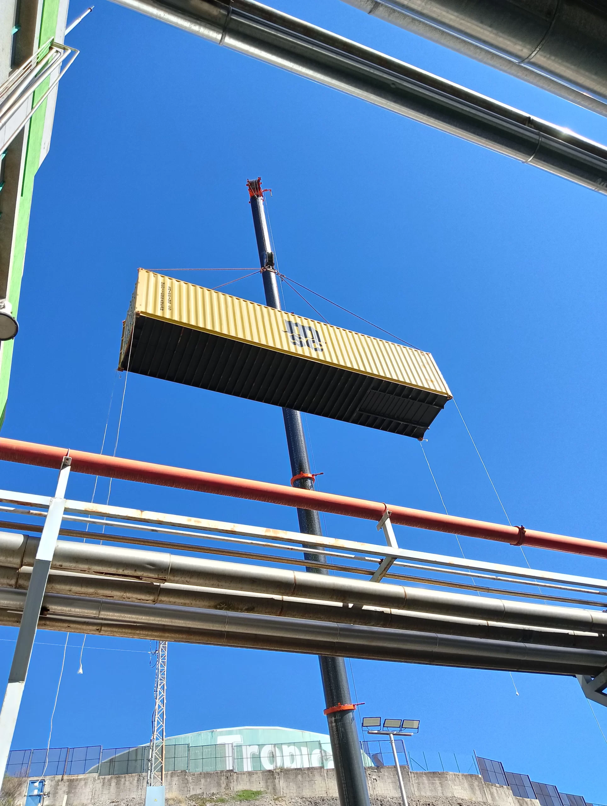El sistema llegó dividido en contenedores y se ensambla pieza a pieza en las instalaciones de la fábrica. Una operación que requiere máxima precisión, planificación y supervisión técnica. Nuestro equipo ha estado presente en cada fase, velando por la seguridad y el correcto desarrollo del montaje.