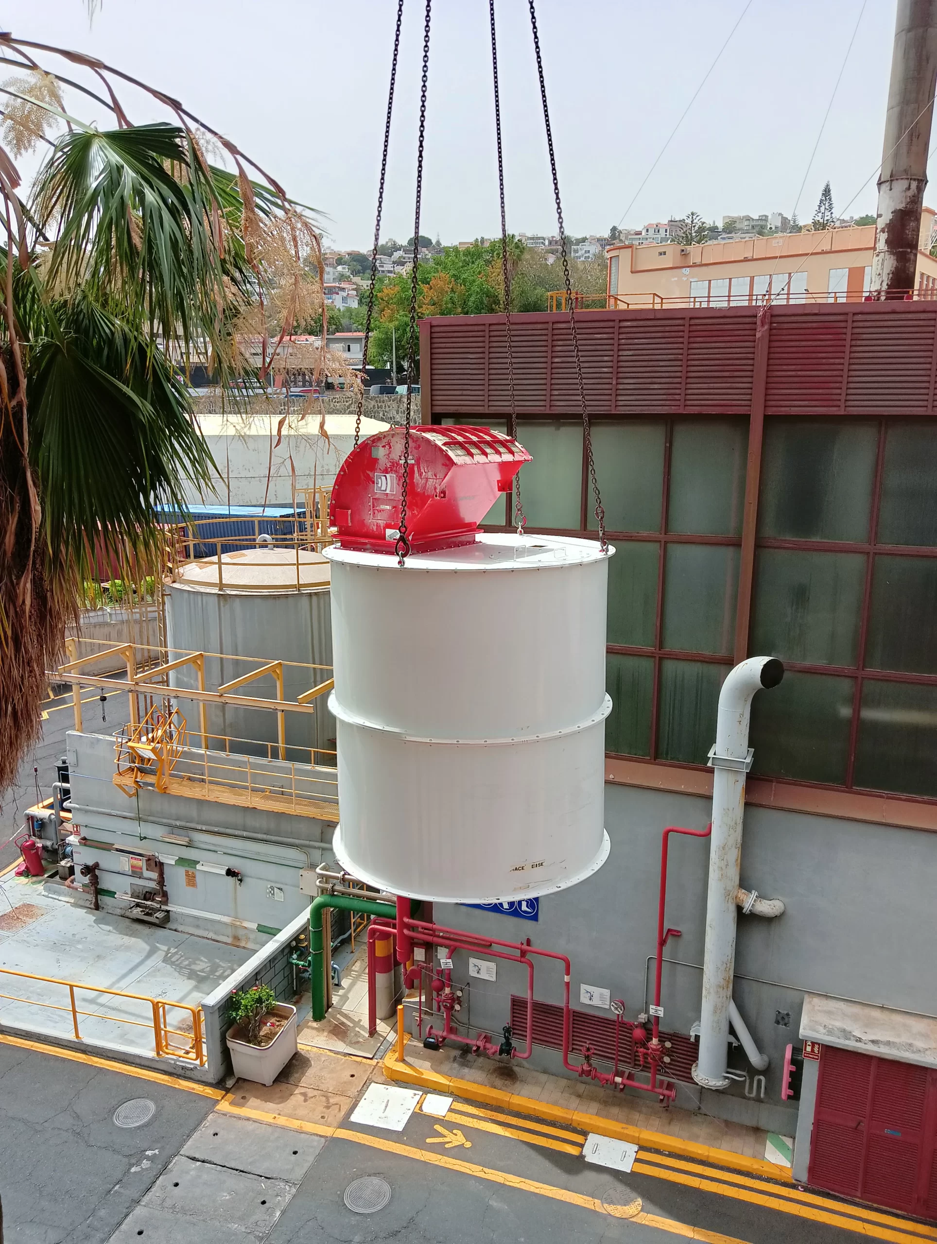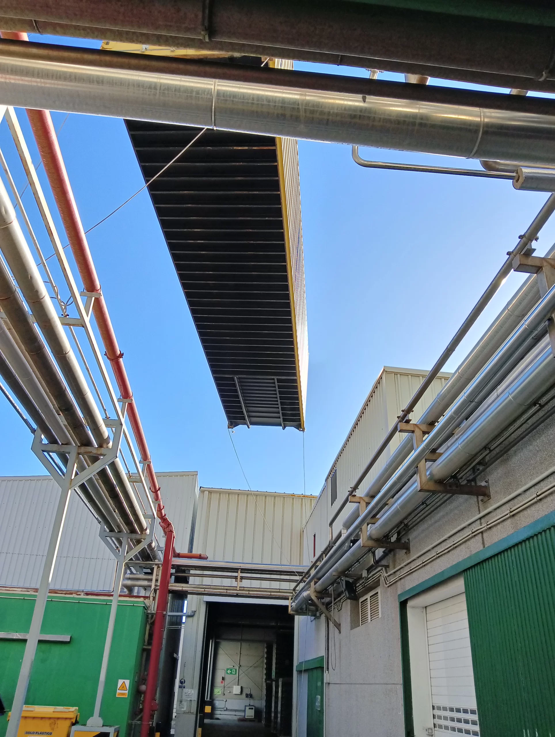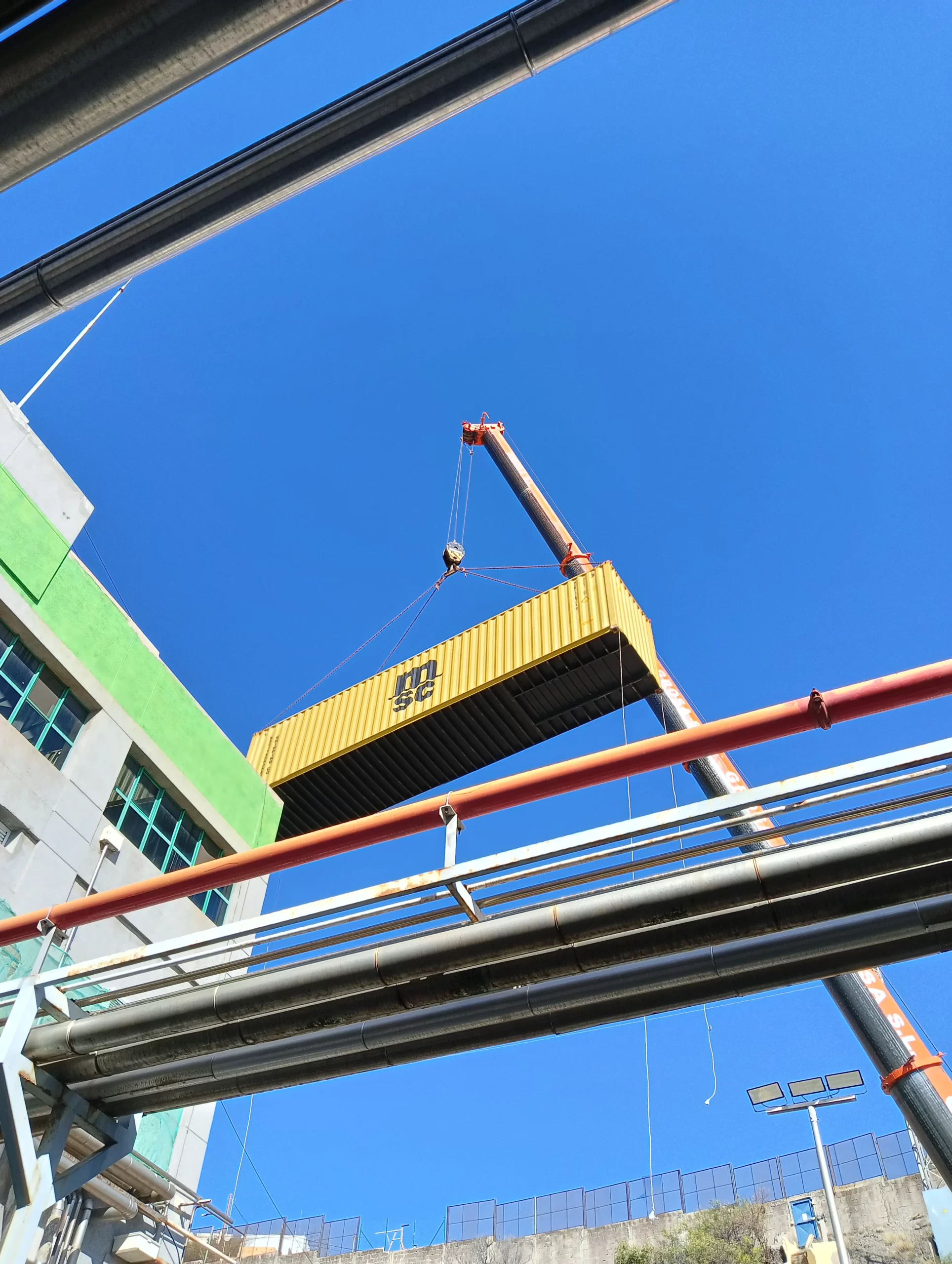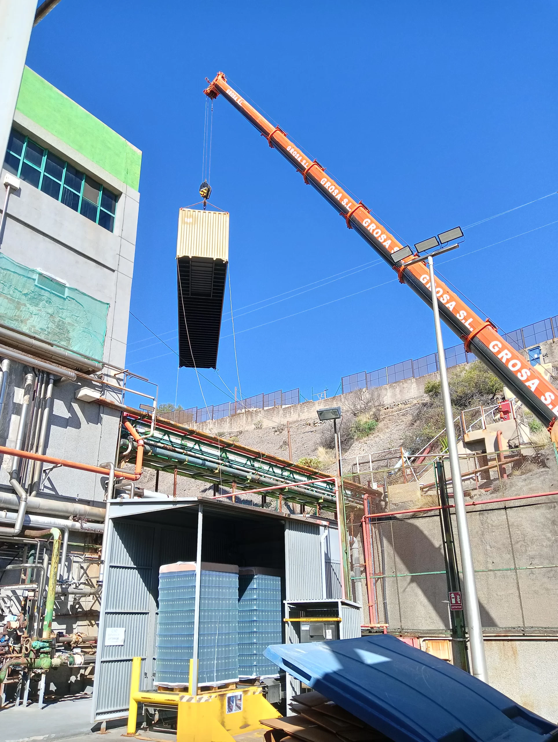 El sistema llegó dividido en contenedores y se ensambla pieza a pieza en las instalaciones de la fábrica. Una operación que requiere máxima precisión, planificación y supervisión técnica. Nuestro equipo ha estado presente en cada fase, velando por la seguridad y el correcto desarrollo del montaje.