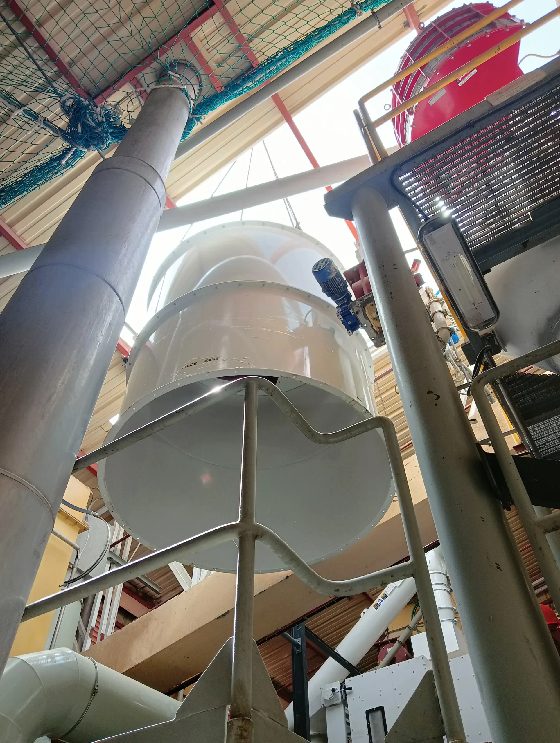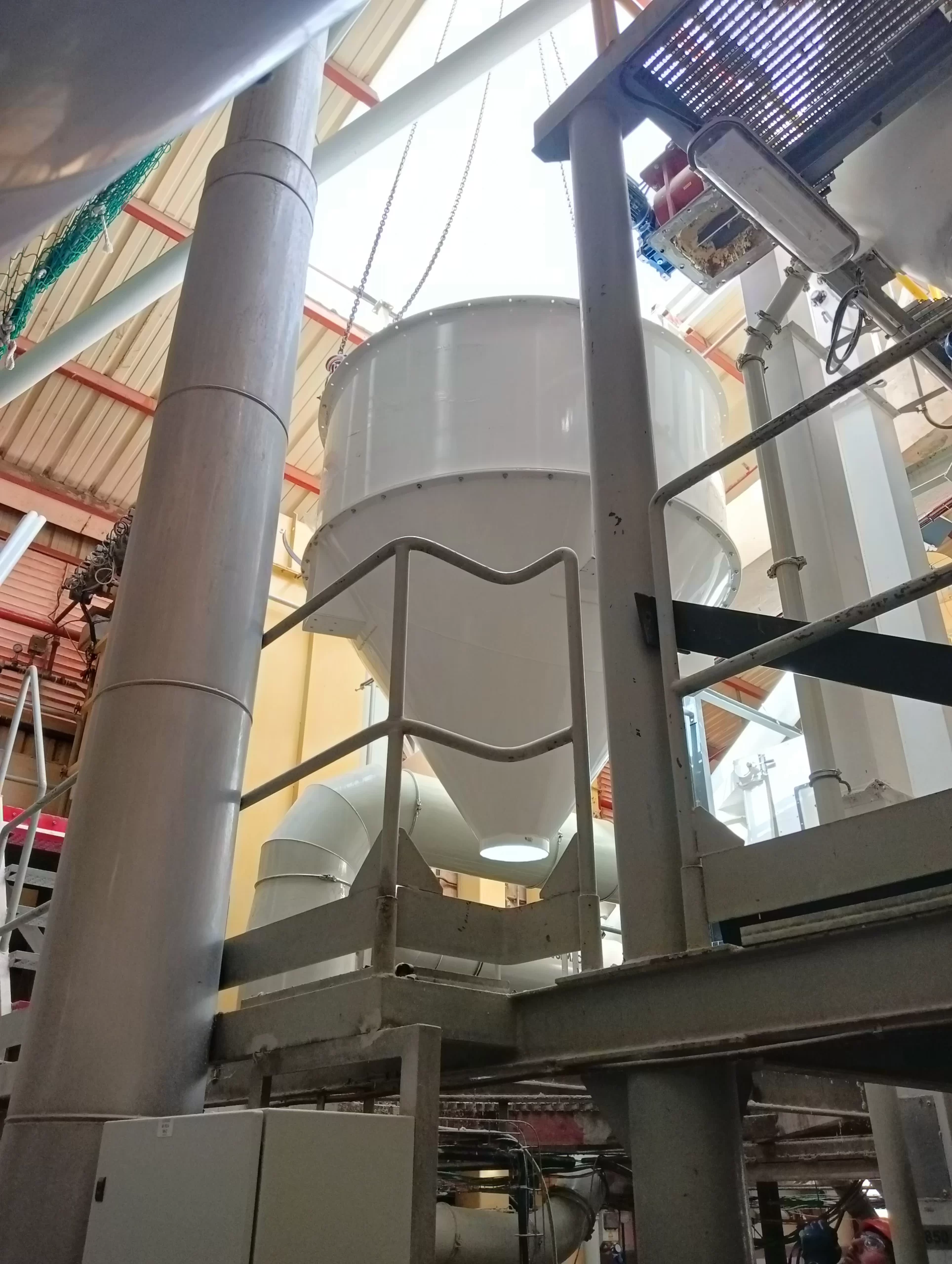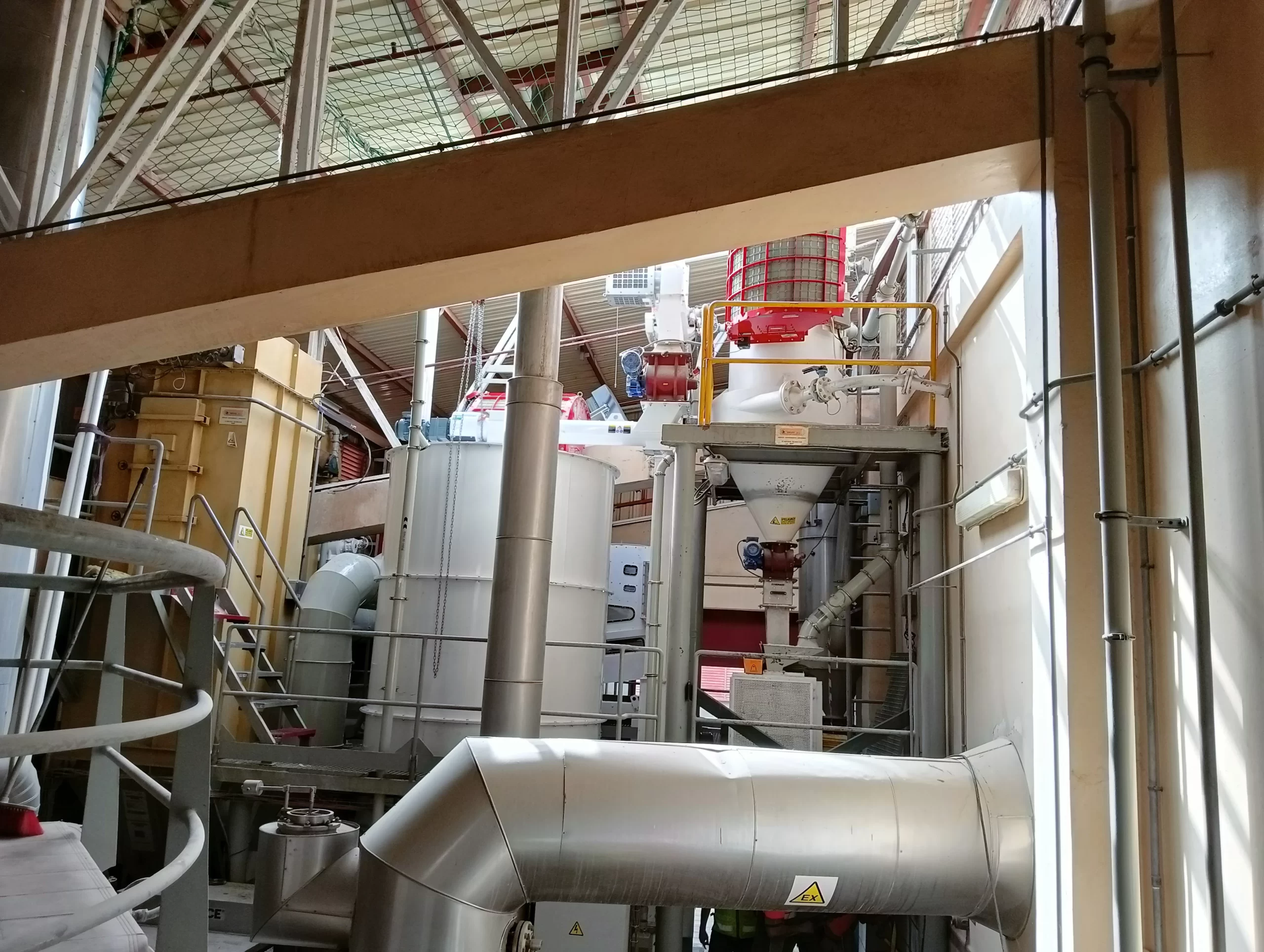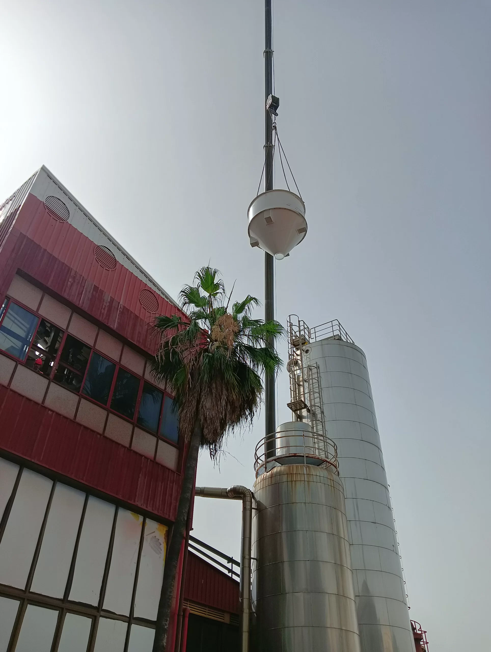 La nueva tolva —una estructura diseñada para almacenar y dosificar ingredientes como arroz, maíz o azúcares— llegó despiezada y ha sido ensamblada pieza a pieza, en una operación que ha requerido máxima precisión, coordinación y control.