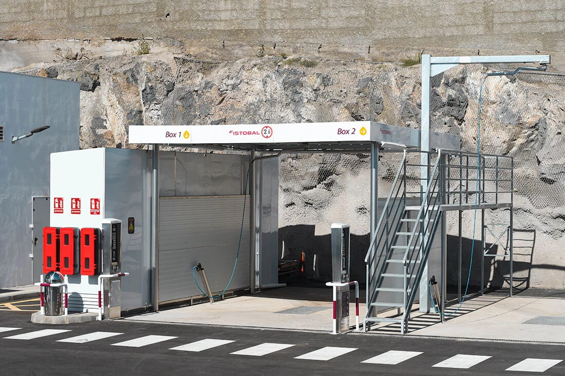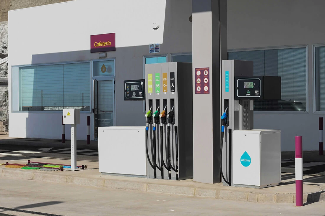 Estación de servicio formada por una zona de repostaje en la que se dispensan cuatro productos petrolíferos(gna 95, gna 98, gasoil y gasoil +), a través de 2 surtidores multiproducto y un punto de recarga rápido 50 kw para vehículos eléctricos.